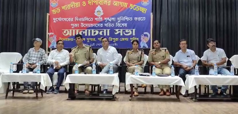 নিউজ সুবার্তা ডিজিটাল ডেস্ক, Published on: 12th Sept. 2025: এবছর রাজধানী আগরতলায় ২২০টিরও বেশি বড় দুর্গাপূজা করা হবে। বৃহস্পতিবার আগরতলা টাউন হলে পূজা উদ্যোক্তা, ডেকোরেটর, সাউন্ড সিস্টেম প্রোভাইডারদের নিয়ে বৈঠক করেন জেলা শাসক এবং পুলিশ সুপার নমিত পাঠক। এদিন সাংবাদিকদের মুখোমুখি হয়ে জেলা শাসক ড: বিশাল কুমার বলেন, সামনেই বাঙালির শ্রেষ্ঠ উৎসব দুর্গাপূজা। এই উৎসবকে কেন্দ্র করে ইতিমধ্যেই রাজ্যজুড়ে প্রস্তুতি শুরু করে দিয়েছেন পূজা উদ্যোক্তারা।তাই আজ পশ্চিম জেলার পূজা উদ্যোক্তাদের নিয়ে গুরুত্বপূর্ণ বৈঠকের আয়োজন করা হয়েছে। দুর্গাপূজাকে শান্তিপূর্ণভাবে এবং সুষ্ঠুভাবে সম্পন্ন করার লক্ষ্যে এই বৈঠক ডাকা হয়েছিল। পূজা উদ্যোক্তাদের বিভিন্ন গুরুত্বপূর্ণ দিক নির্দেশনা দেওয়া হয়েছে। তিনি বলেন, বর্তমানে রাজধানীতে ড্রেনের কাজ চলায় রাস্তার পরিধি কিছুটা সংকুচিত হয়েছে। তাই ক্লাব গুলিকে নির্দেশ দেওয়া হয়েছে যাতে নির্দিষ্ট রাস্তার সীমানা অতিক্রম করে আলোকসজ্জা না করা হয়। অন্যথায় যানবাহন চলাচলে চরম বিঘ্ন ঘটবে বলে তিনি জানান।