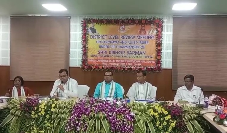 নিউজ সুবার্তা ডিজিটাল ডেস্ক, Published on: 13th Oct. 2025: সোমবার সোনার তরি তথা রাজ্য অতিথি শালায় পঞ্চায়েত ও বিভিন্ন ইস্যু নিয়ে জেলা ভিত্তিক পর্যালোচনা বৈঠক অনুষ্ঠিত হয়। বৈঠকে উপস্থিত ছিলেন রাজ্যের পঞ্চায়েত মন্ত্রী কিশোর বর্মণ, পশ্চিম ত্রিপুরা জেলার শাসক ড বিশাল কুমার, পশ্চিম ত্রিপুরা জেলা পরিষদের ভারপ্রাপ্ত সভাধিপতি বিশ্বজিৎ শীল ও বাধারঘাট বিধানসভা কেন্দ্রের বিধায়িকা মিনা রানী সরকার সহ দফতরের অন্যান্য আধিকারিকরা। পর্যালোচনা বৈঠকে সংবাদ মাধ্যমের সামনে মন্ত্রী বলেন, পঞ্চায়েত রাজ মন্ত্রী হিসেবে দায়িত্ব নেওয়ার পর আমি রাজ্যের প্রতিটি জেলায় রিভিও মিটিং শুরু করি।আজ পশ্চিম ত্রিপুরা জেলা পরিষদের মিটিংয়ের পর আমার প্রথম ধাপে সারা রাজ্যে পর্যালোচনা বৈঠক সম্পন্ন হবে। তারপর দ্বিতীয় ধাপ শুরু হবে। প্রতি তিন মাস অন্তর অন্তর আমি এধরনের মিটিং করব রাজ্যের প্রতিটি জেলায় l জানান মন্ত্রী l
